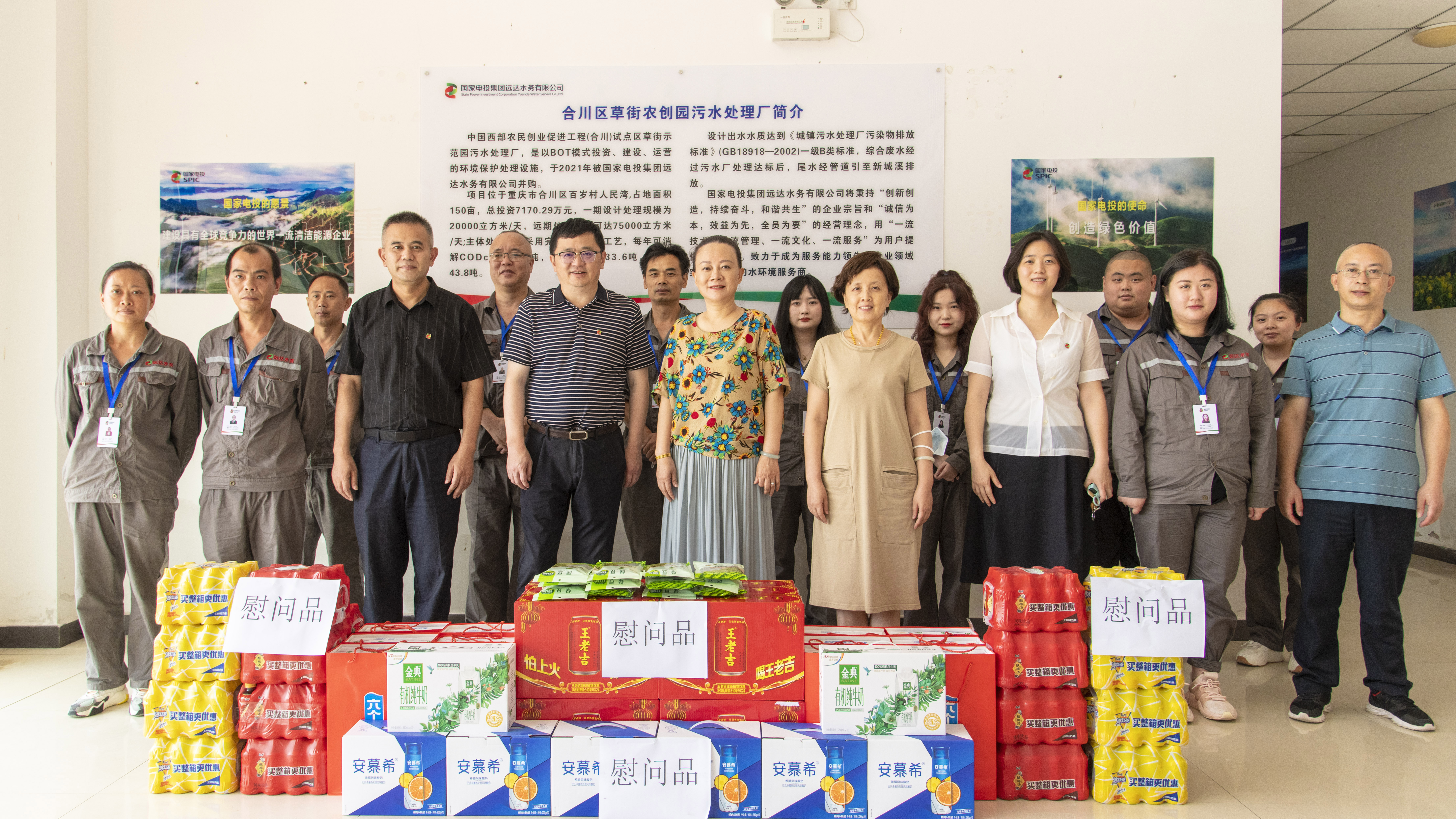 8月2日上午,重庆市能源工会一级调研员裴燕、二级调研员任莉一行走访慰问m88官网水务公司合川污水处理厂职工,将防暑降温药品、饮料等物品送到每一位奋战在一线岗位的职工手中,为在酷暑中仍然坚守在工作岗位、辛勤工作的劳动者送去清凉和关爱。