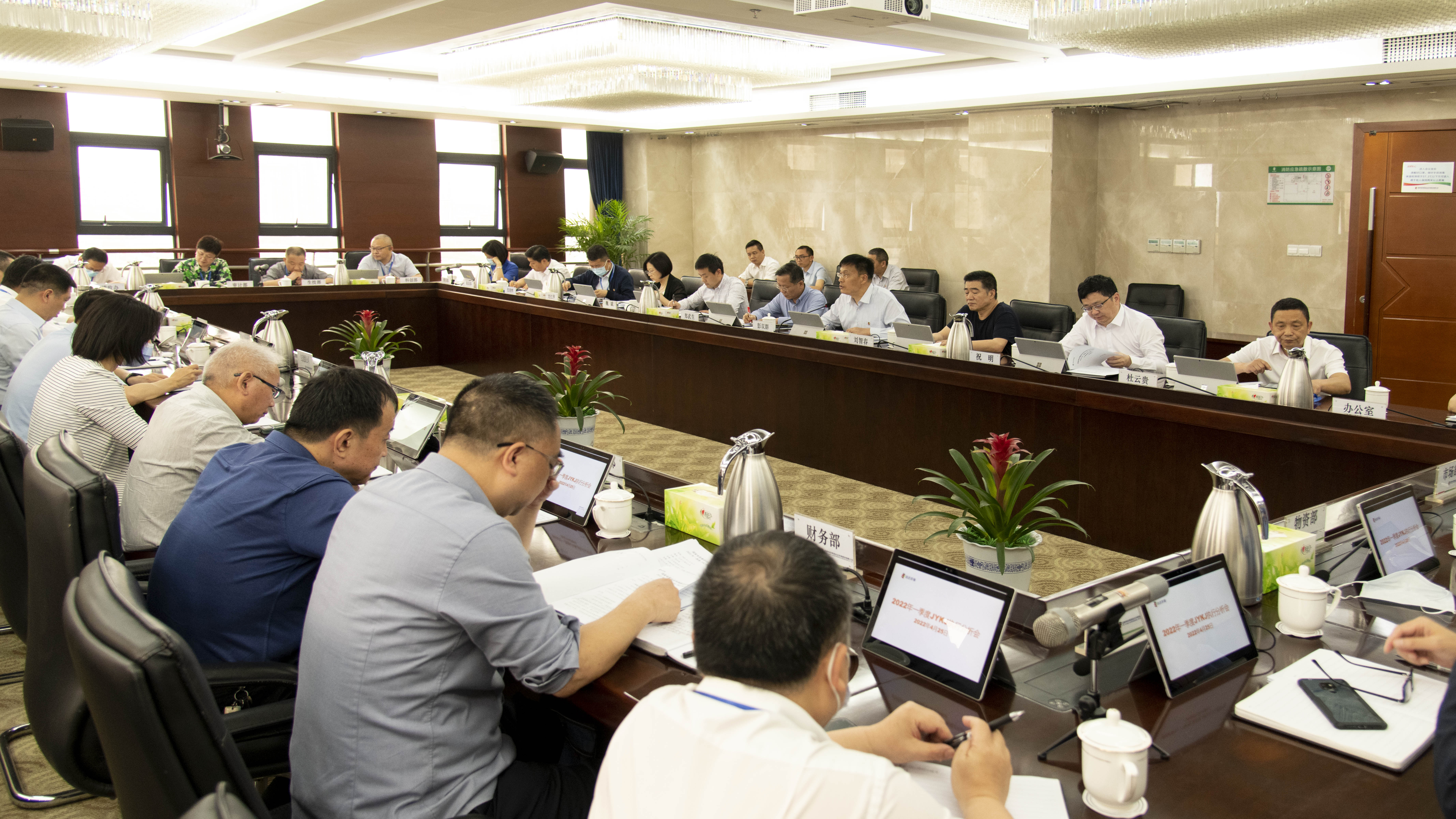 4月25日,m88官网召开一季度JYKJ执行情况分析会议。公司党委书记、董事长郑武生出席会议并讲话,党委委员、副总经理(代行总经理职责)彭双群主持会议,公司班子成员出席会议。