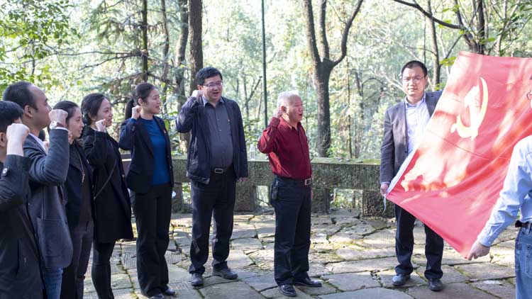 “我志愿加入中国共产党……”11月19日,重庆抗战遗址博物馆云岫楼前,一声声铿锵有力、语音洪亮的宣誓声传来,m88官网机关第八党支部全体党员举起右手,在鲜红的党旗前重温着入党时的铮铮誓言。