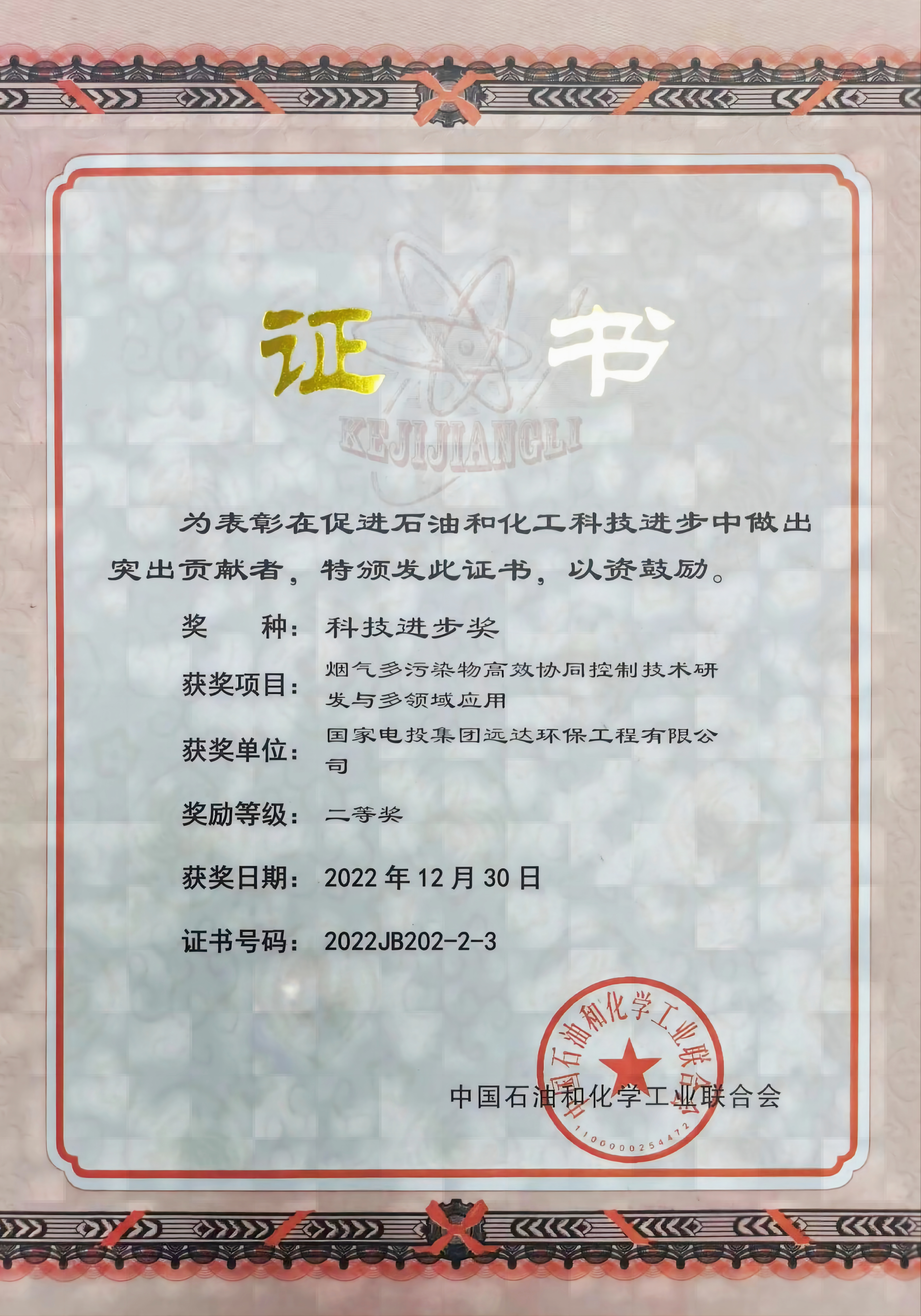 工程公司荣获中国石油和化学工业联合会2022年度科技进步奖二等奖