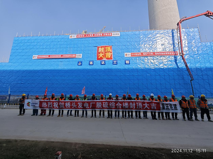 11月12日,由特许经营公司建设、工程公司承建的青海省投3×660MW“上大压小”火电机组脱硫脱硝除尘特许经营项目(简称大通项目)脱硫综合楼顺利封顶